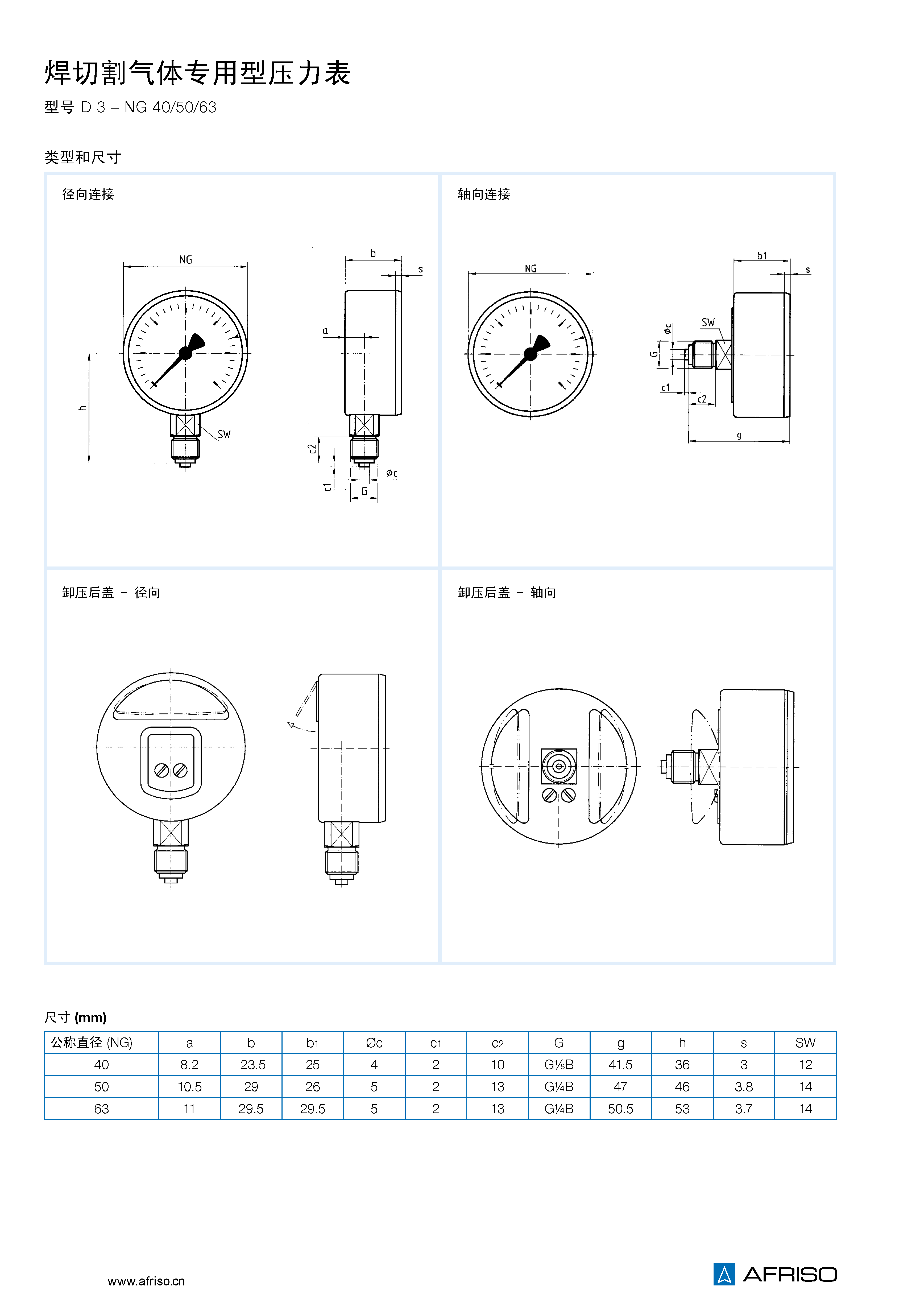 銅合金,徑向或中心軸向 G1/4B– 扳手尺寸SW14 ( EN 837-1/7.3 ) |