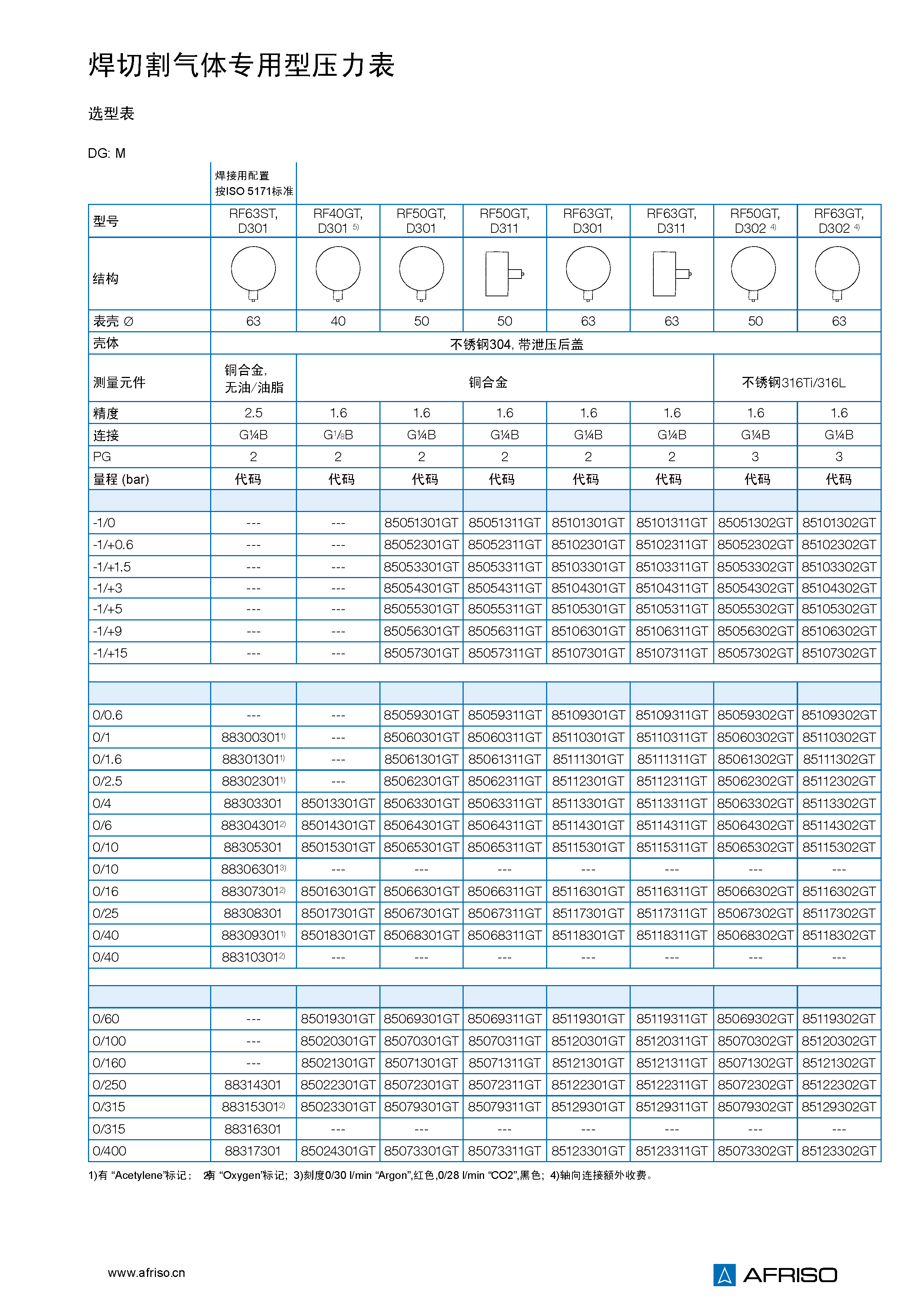 量程( EN 837-1/5 ) |