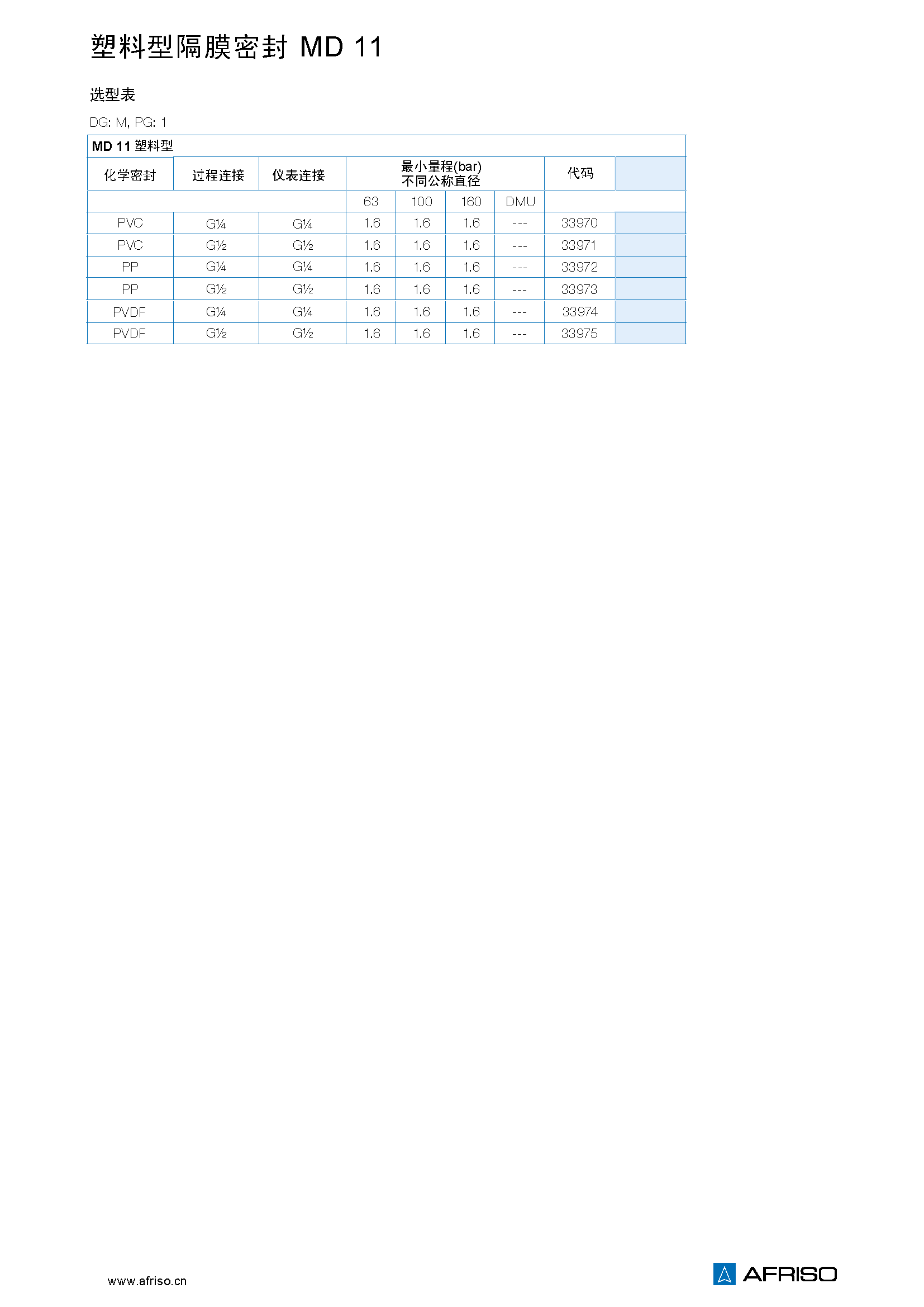 PVC 0/60 ℃ PP -10 / +80℃ PVDF -20/+100 °C |