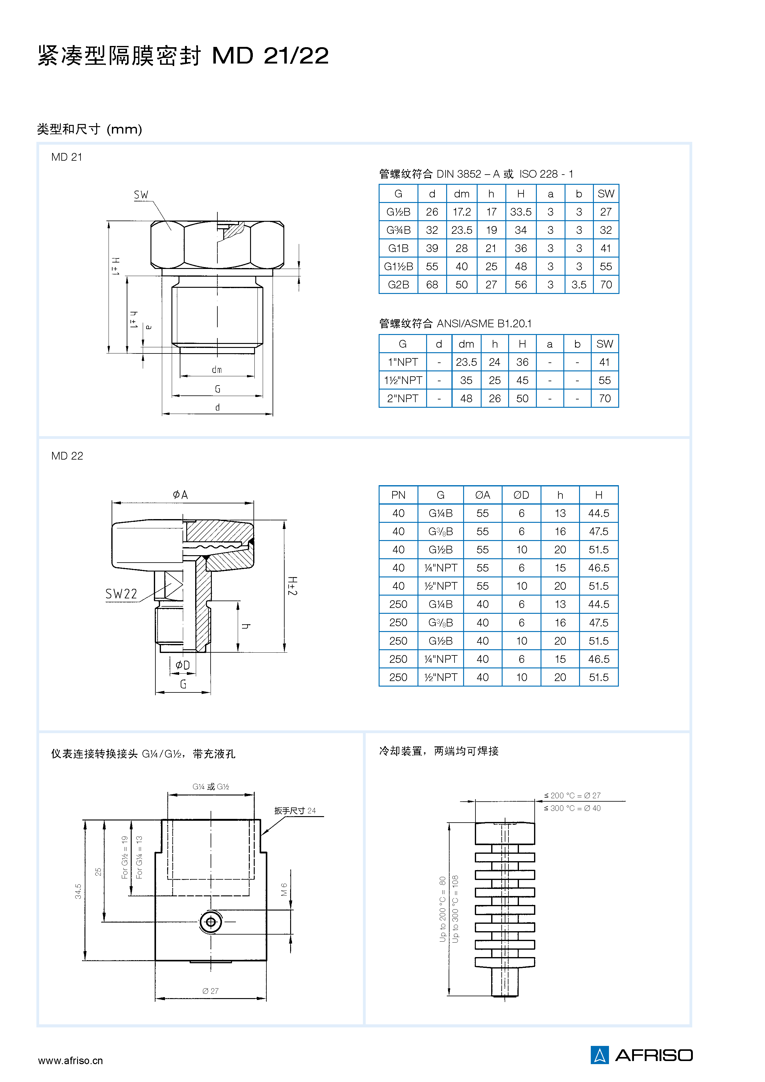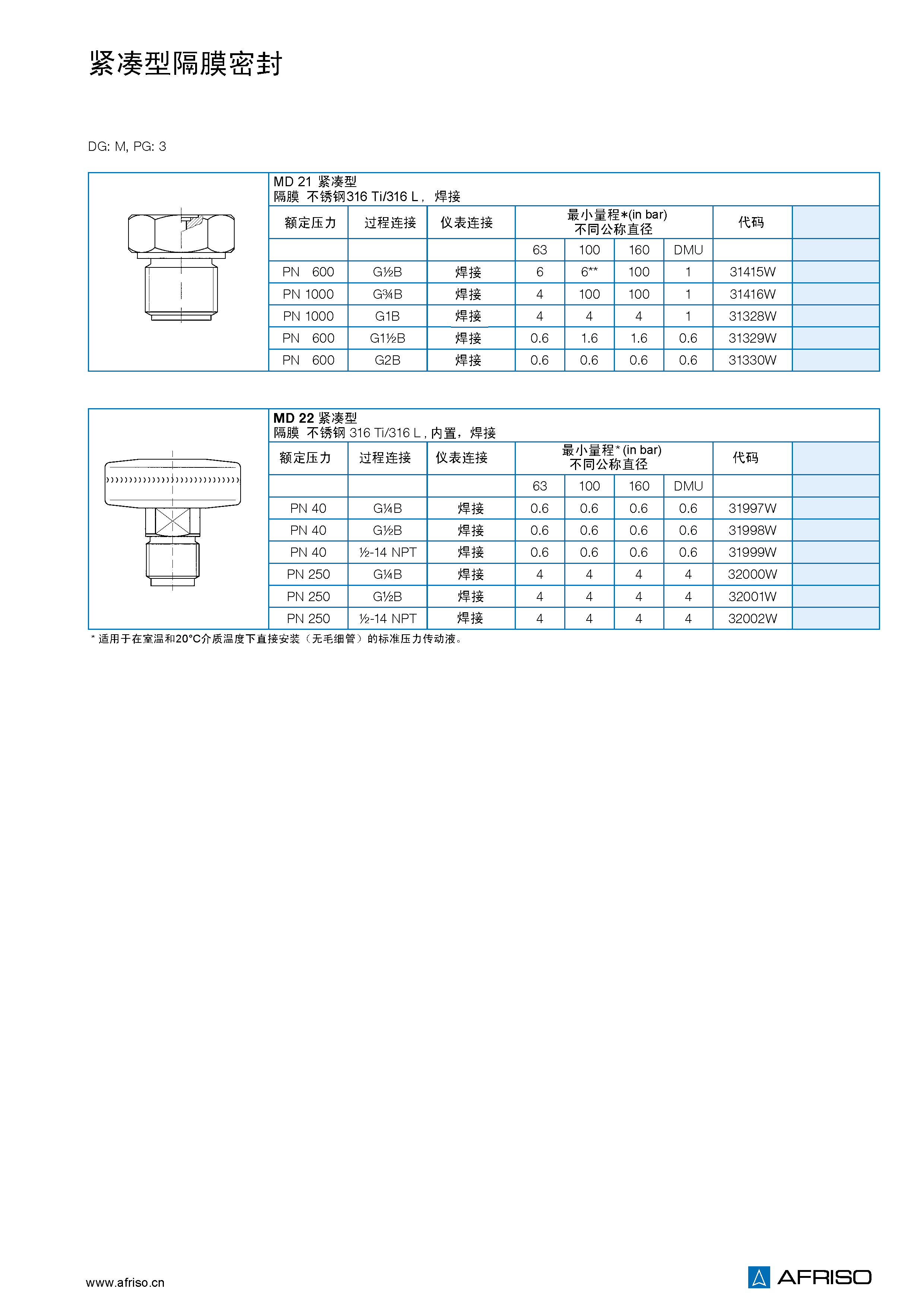 不銹鋼 316 L 齊平膜焊接到螺紋本體上 沒有死角 |