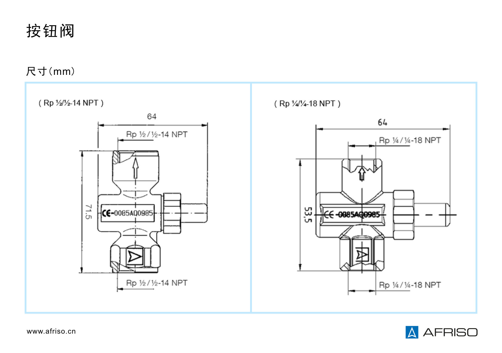 2 x 內螺紋、Rp 1/2, EN 10226、Rp 1/4 EN 10226、1/2NPT(無測試)、1/4 NPT(無測試) |