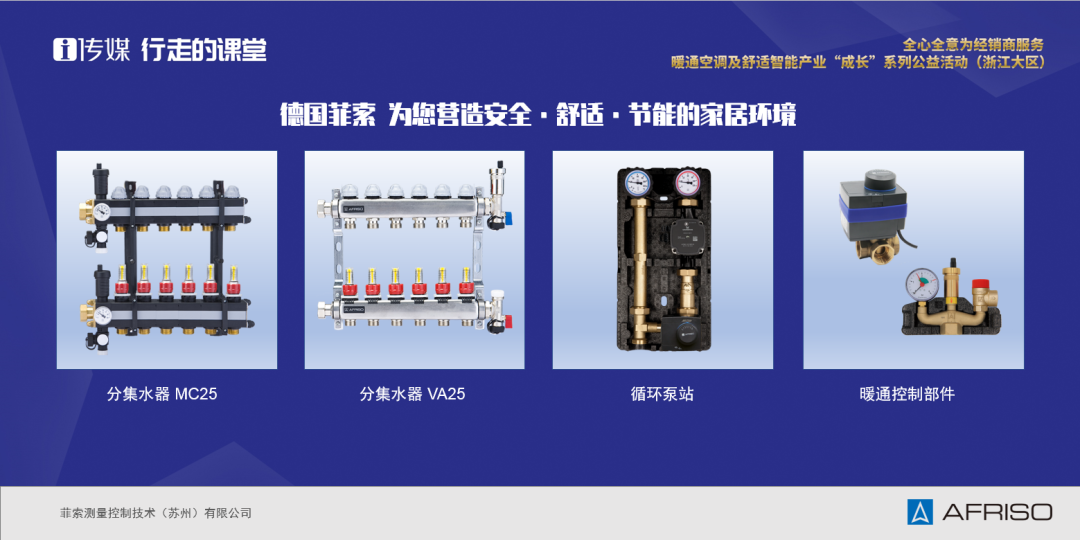 本次系統(tǒng)安裝實操大賽選用的尼龍分集水器MC25由菲索提供。我們同時贊助一套水力部件套餐作為活動獎項。在展覽區(qū),菲索不銹鋼分集水器VA25、節(jié)能循環(huán)泵站等控制部件也吸引了大量觀眾駐足。
