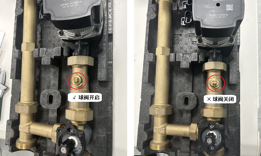 ② 水泵下面的球閥應(yīng)保持開啟狀態(tài)