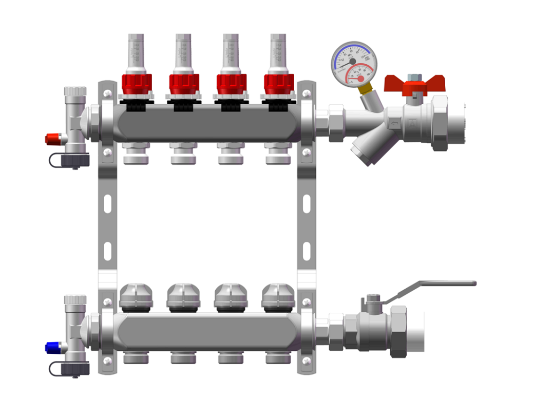 分水器(供水側(cè)) - 逆時針旋轉(zhuǎn)紅色旋帽開啟。