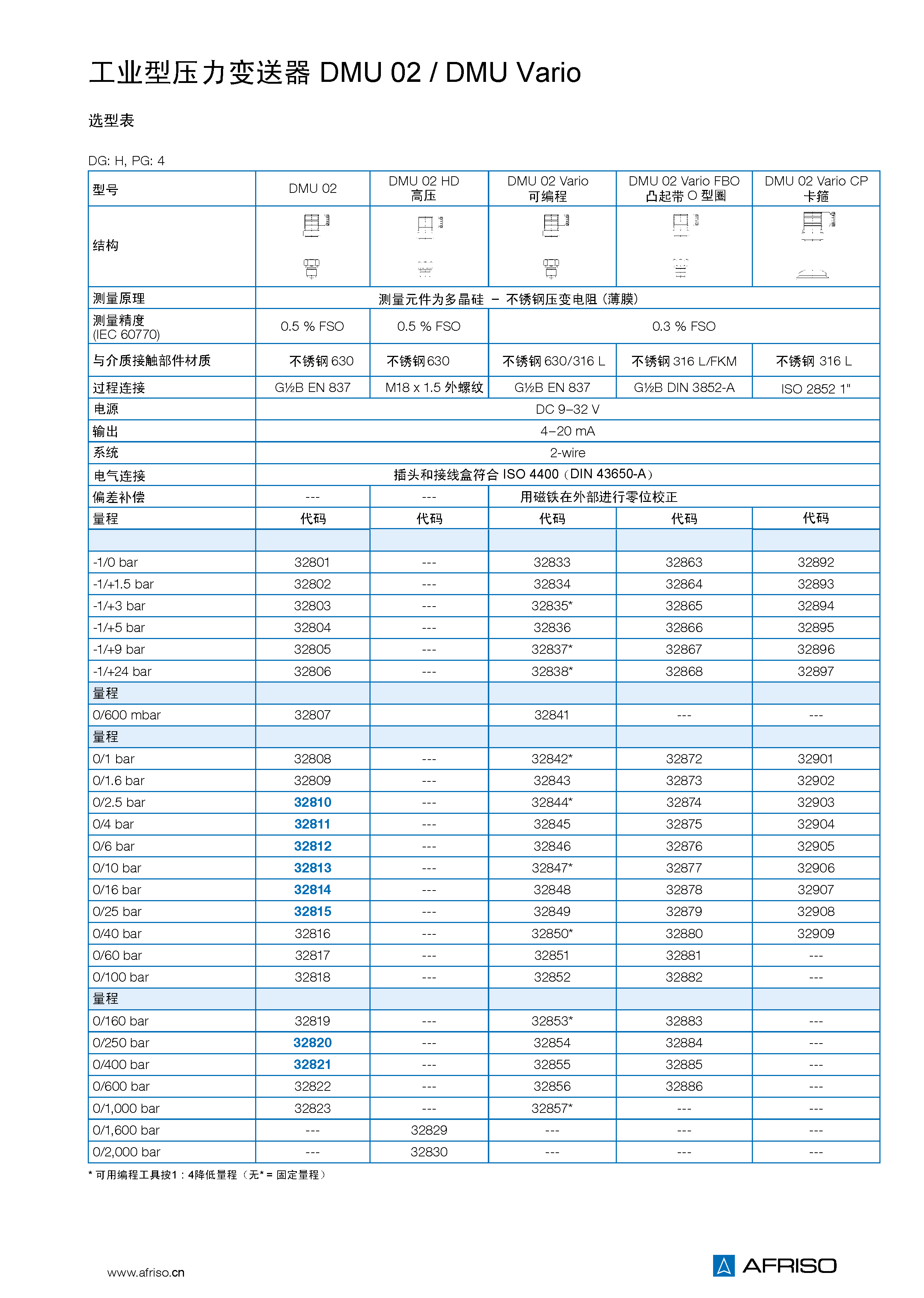 相對壓力: -0.1/0 MPa到-0.1/+2.4 MPa 0/0.1 MPa到 0/100 MPa |