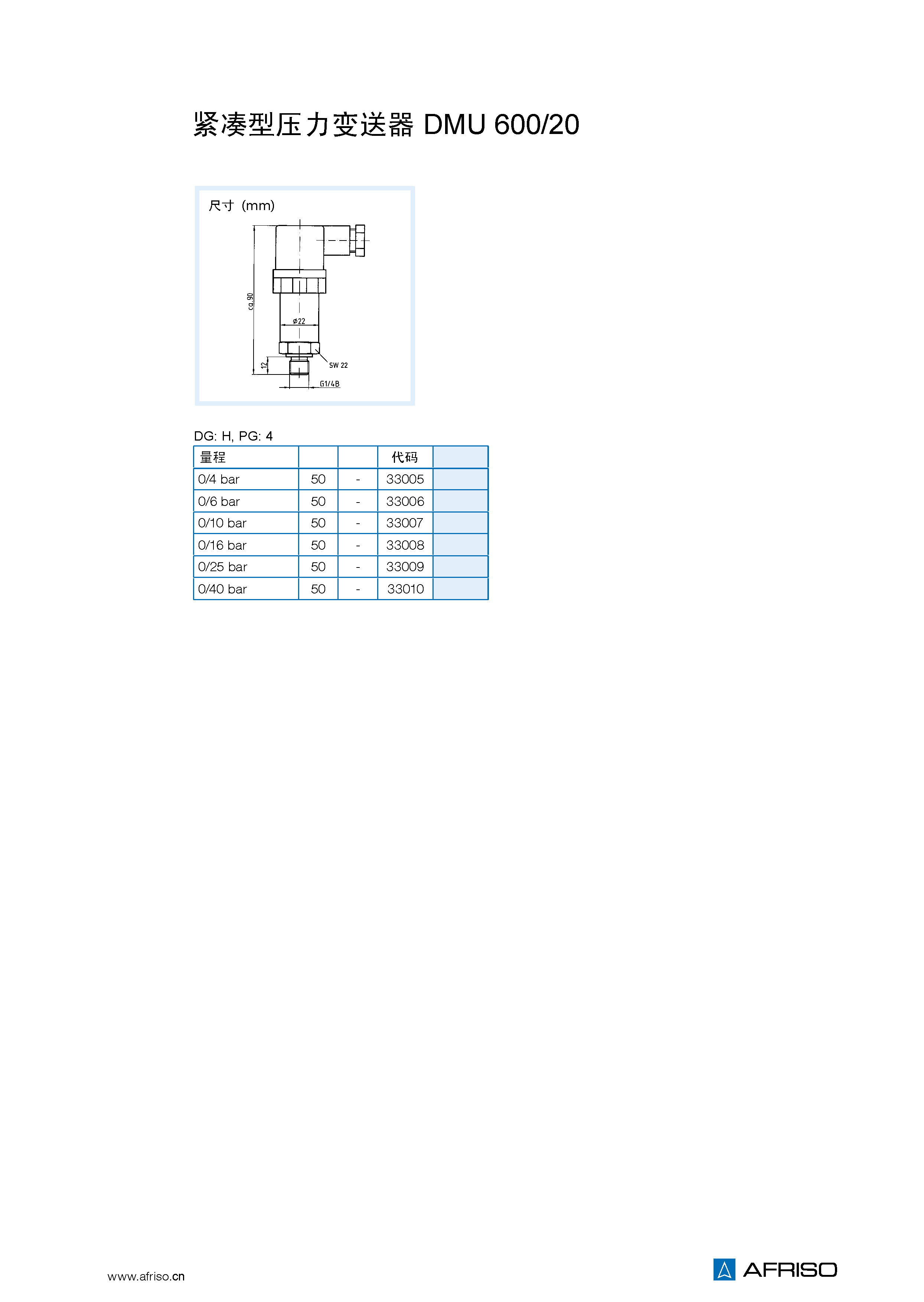 壓力變送器將物理壓力轉(zhuǎn)換成與壓力成正比的電信號。DMU600/20的測量單元是硅壓變電阻。 |