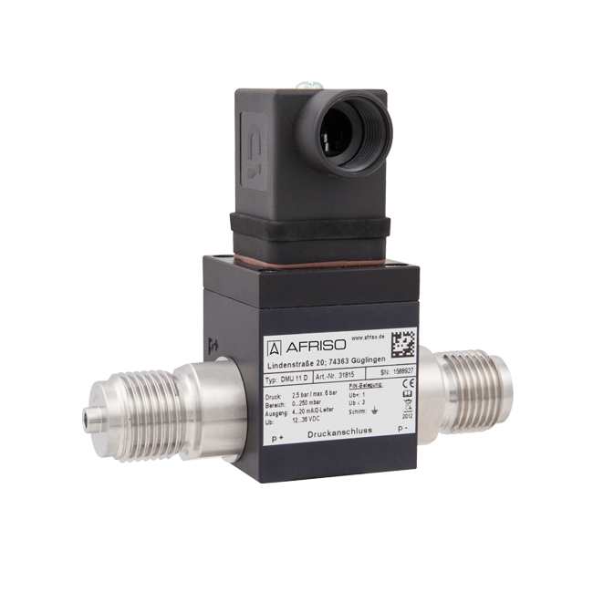 DeltaFox® DMU 11 D采用油浸式壓電不銹鋼測量元件。施加壓力后,正側(cè)和負(fù)側(cè)的壓力差被轉(zhuǎn)化成與之成正比的電流或電壓信號 |