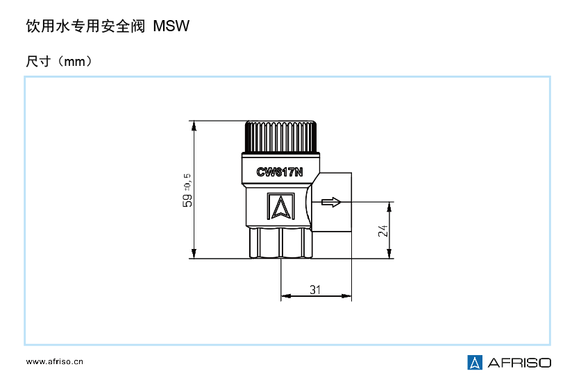 閥體: 銅CW617N 本色或鍍鎳 閥帽: PA6,藍(lán)色 密封件: 飲用水專用型MSW:EPDM 彈簧: 彈簧鋼絲EN10270-1DH(D) |