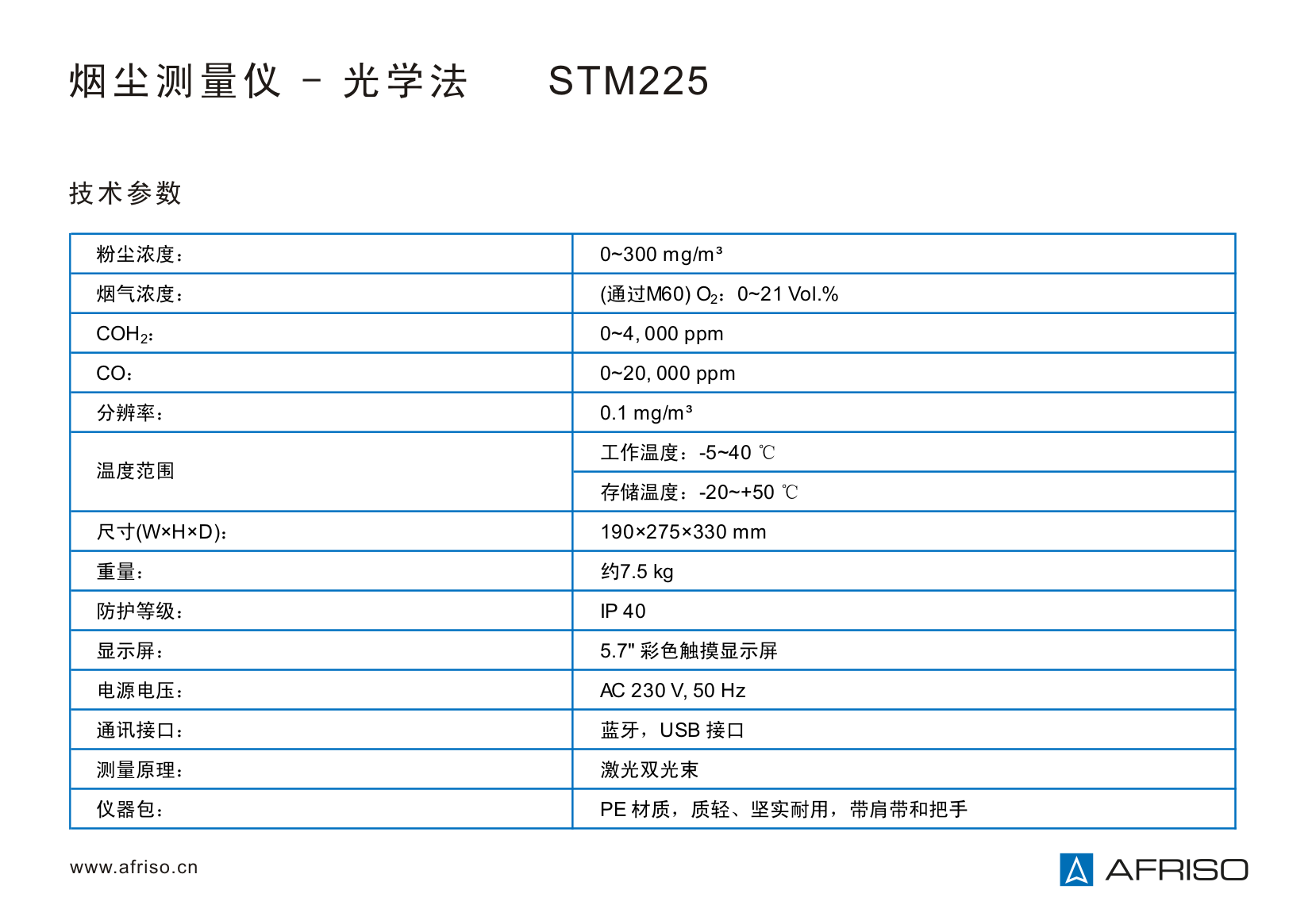 選擇它的多種理由: 技術(shù):光學(xué)測(cè)量原理 準(zhǔn)確性:絕對(duì)可信的測(cè)量結(jié)果,測(cè)量過(guò)程不受外界因素的干擾(如震動(dòng)、海拔、溫濕度等) 操作:步步引導(dǎo)的菜單測(cè)量程序,簡(jiǎn)單直觀,易操作 數(shù)據(jù)讀取:通過(guò)5.7"的高清顯示屏,實(shí)時(shí)讀取測(cè)量值 面向未來(lái):免費(fèi)的軟件更新 可追溯性:可永久顯示當(dāng)前測(cè)量值 節(jié)省時(shí)間:快速預(yù)熱及零點(diǎn)校準(zhǔn)階段,即刻讀取實(shí)時(shí)測(cè)量值,耗費(fèi)的時(shí)間遠(yuǎn)遠(yuǎn)優(yōu)于經(jīng)典“稱(chēng)重法” 連接性:通過(guò)藍(lán)牙智能連接煙氣分析儀M60 更豐富的選配件適用于各種固體燃料系統(tǒng)的粉塵顆粒物檢測(cè)