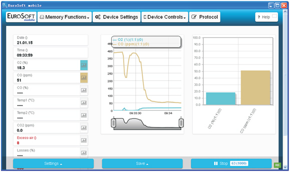 EuroSoft mobile 軟件適用于煙氣分析儀器、電子壓力計(jì) S4600 ST、風(fēng)速儀 BlueAir ST 與 PC 端或智能手機(jī)之間的連接通訊。通過(guò)免費(fèi)的 Eurosoft Mobile 軟件 , 用戶可以方便的使用電腦、Pad 或手機(jī)遠(yuǎn)程操作儀器,查看、編輯測(cè)量數(shù)據(jù)等。