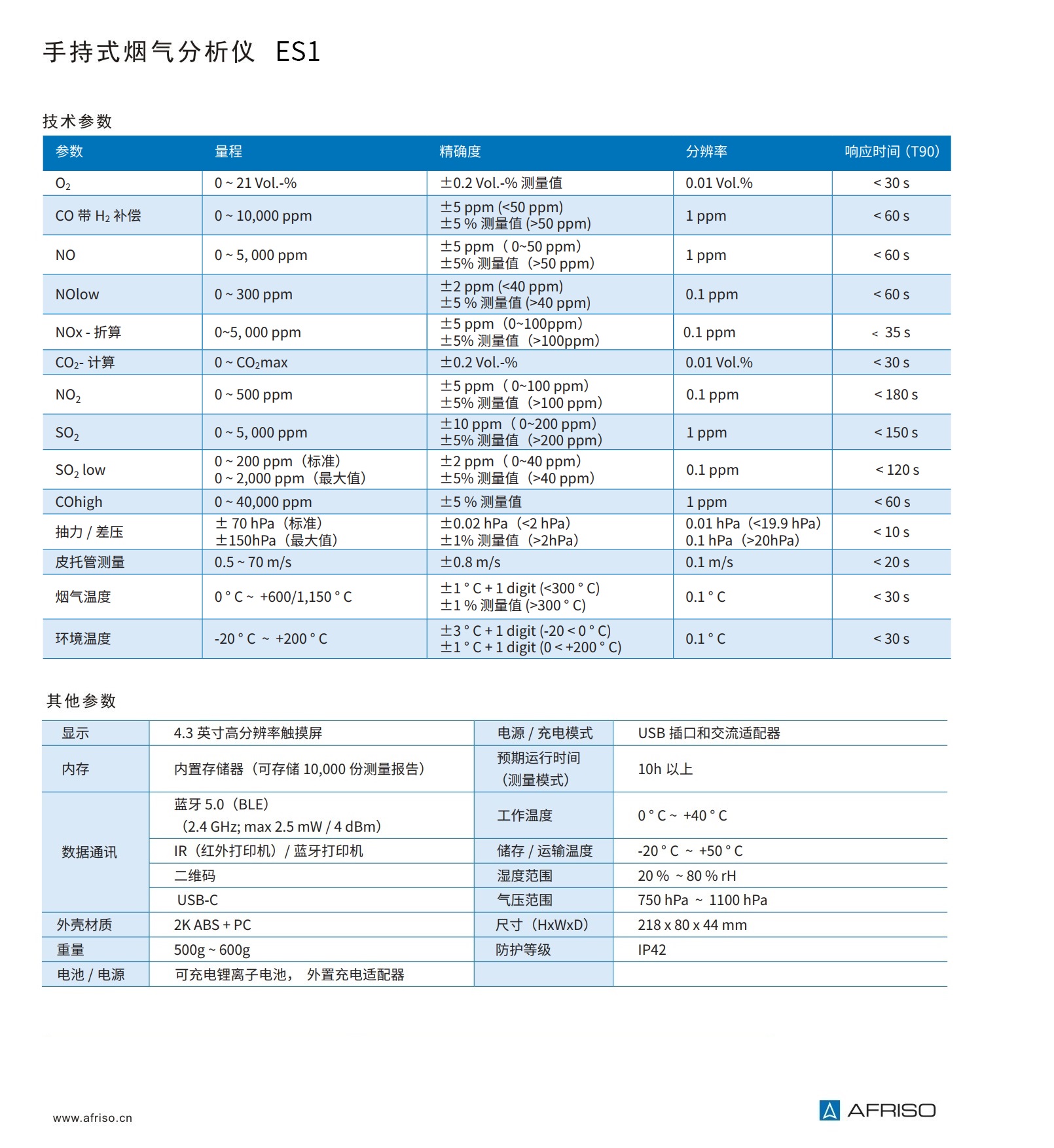 煙氣分析儀ES1可滿足燃油、燃?xì)狻⒚禾亢皖w粒物等燃料燃燒系統(tǒng)普遍測(cè)量需求,幫助用戶對(duì)工業(yè)燃燒設(shè)備,民用暖通設(shè)備及熱電聯(lián)產(chǎn)(CHP)供熱系統(tǒng)等進(jìn)行精準(zhǔn)的排放檢測(cè),能夠精確測(cè)量O2、CO/H2、NO、NOx 溫度、壓力(流量),并準(zhǔn)確計(jì)算lambda、燃燒效率(Eta)、煙氣損失(qA)、露點(diǎn)、NOx?和?CO2 等參數(shù)。 |