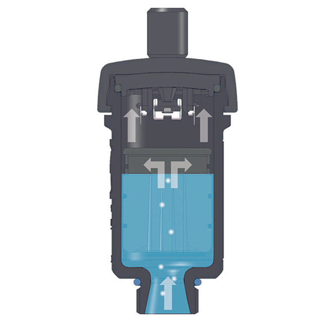 應(yīng)用于空調(diào)、制冷等供熱采暖制冷等閉合系統(tǒng),自動排出系統(tǒng)內(nèi)熱(冷)交換介質(zhì)中的空氣(氣泡), 提高熱(冷)交換效率,降低噪音。 |