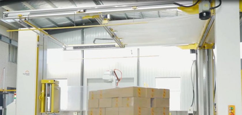 全自動在線纏繞機是一款配合自動流水線一起使用的一款纏繞機,在線式纏繞機由PLC控制,可實現(xiàn)自動檢測,自動輸送,自動纏繞包裝、自動上斷膜一整套包裝工序,完全實現(xiàn)無人化操作;自動覆膜機是將托盤貨物頂部覆蓋一層防雨膜,與纏繞機配合實現(xiàn)對托盤五面覆蓋包裝,起到防塵防潮加固等作用。適用于托盤類貨物,較大較重的物品纏繞包裝。