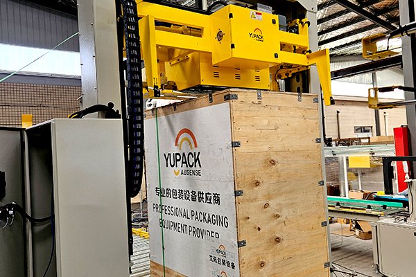 電動(dòng)工具托盤碼垛通過式覆頂膜纏繞捆扎包裝線,是由自適應(yīng)型供棧機(jī)、機(jī)器人碼垛機(jī)、棧板穿劍捆扎機(jī)、通過式覆頂膜機(jī)以及搖臂式纏繞包裝機(jī)組合而成。自適應(yīng)型供棧機(jī)可根據(jù)不同托盤尺寸,自動(dòng)調(diào)整機(jī)器并分配托盤,節(jié)省了人工換產(chǎn)的時(shí)間。