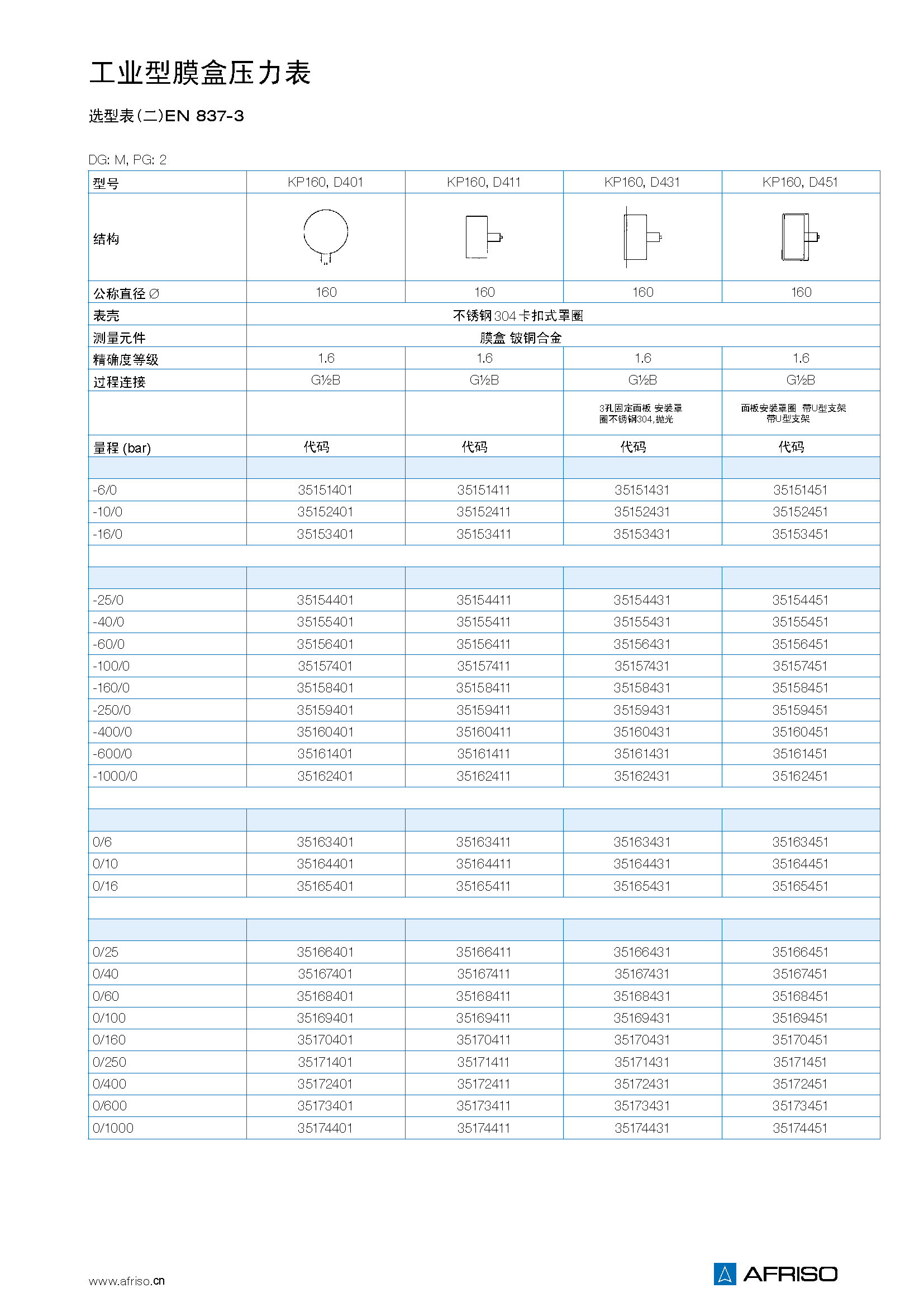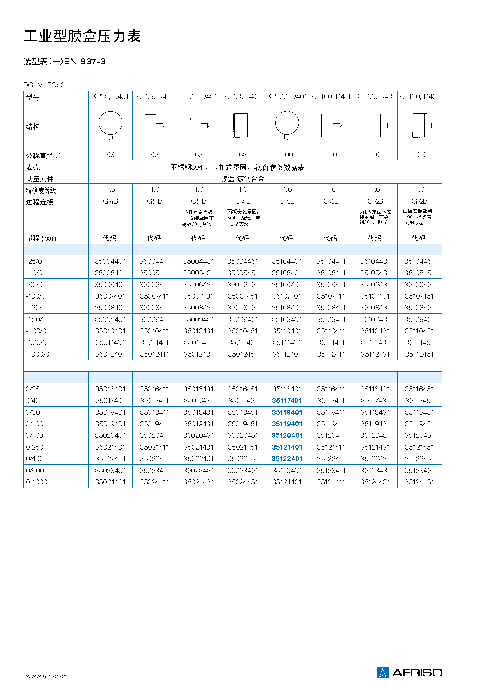 NG 63-100 0/2.5到 0/100 KPa NG 160 0/0.6到 0/100 KPa 和相應(yīng)的真空和混合壓力量程,所有量程均有過壓保護 |