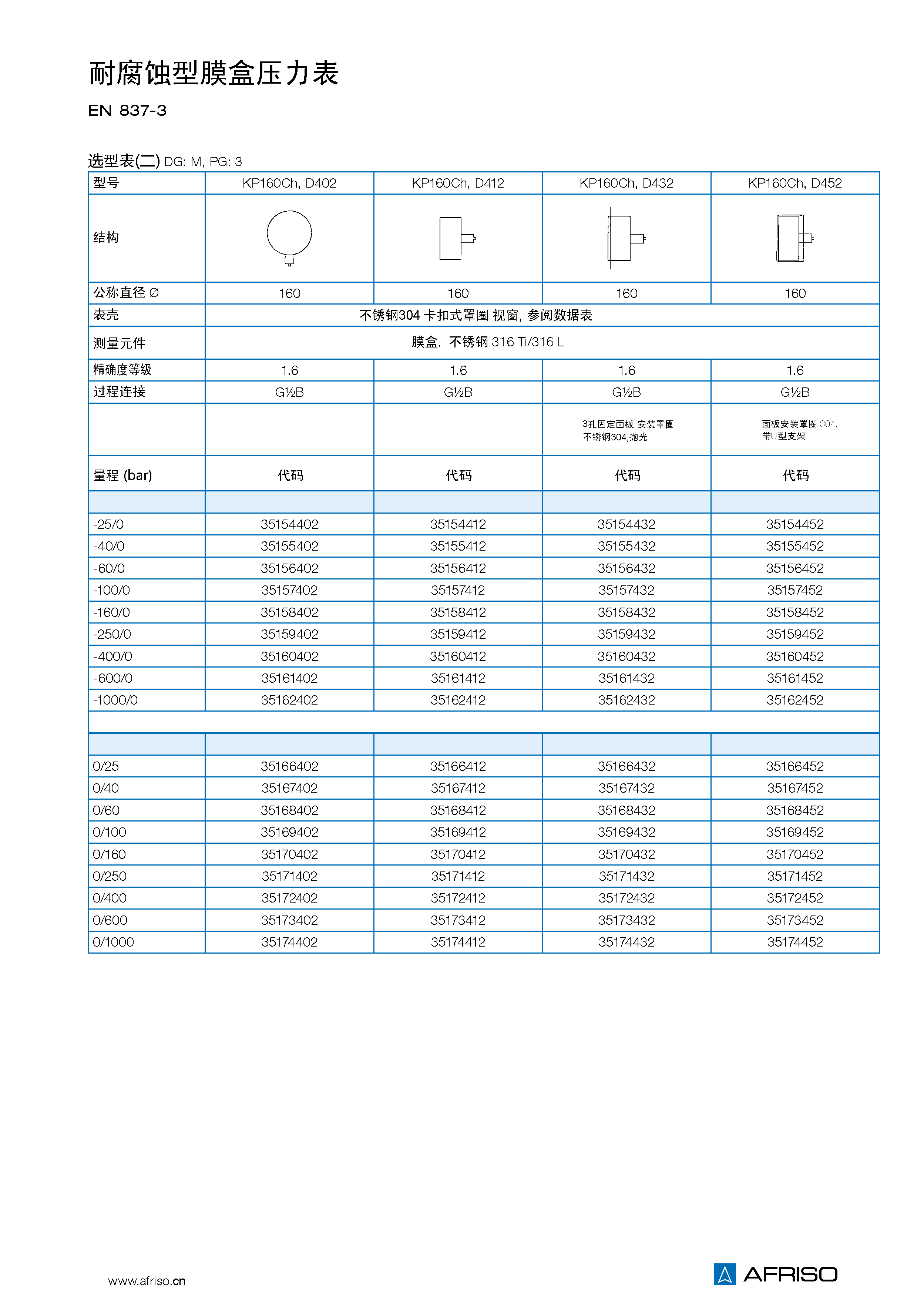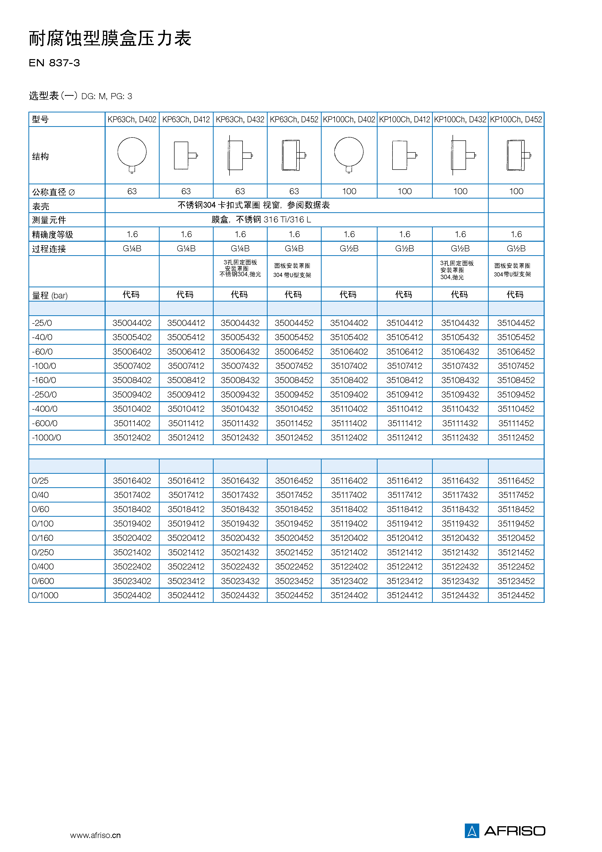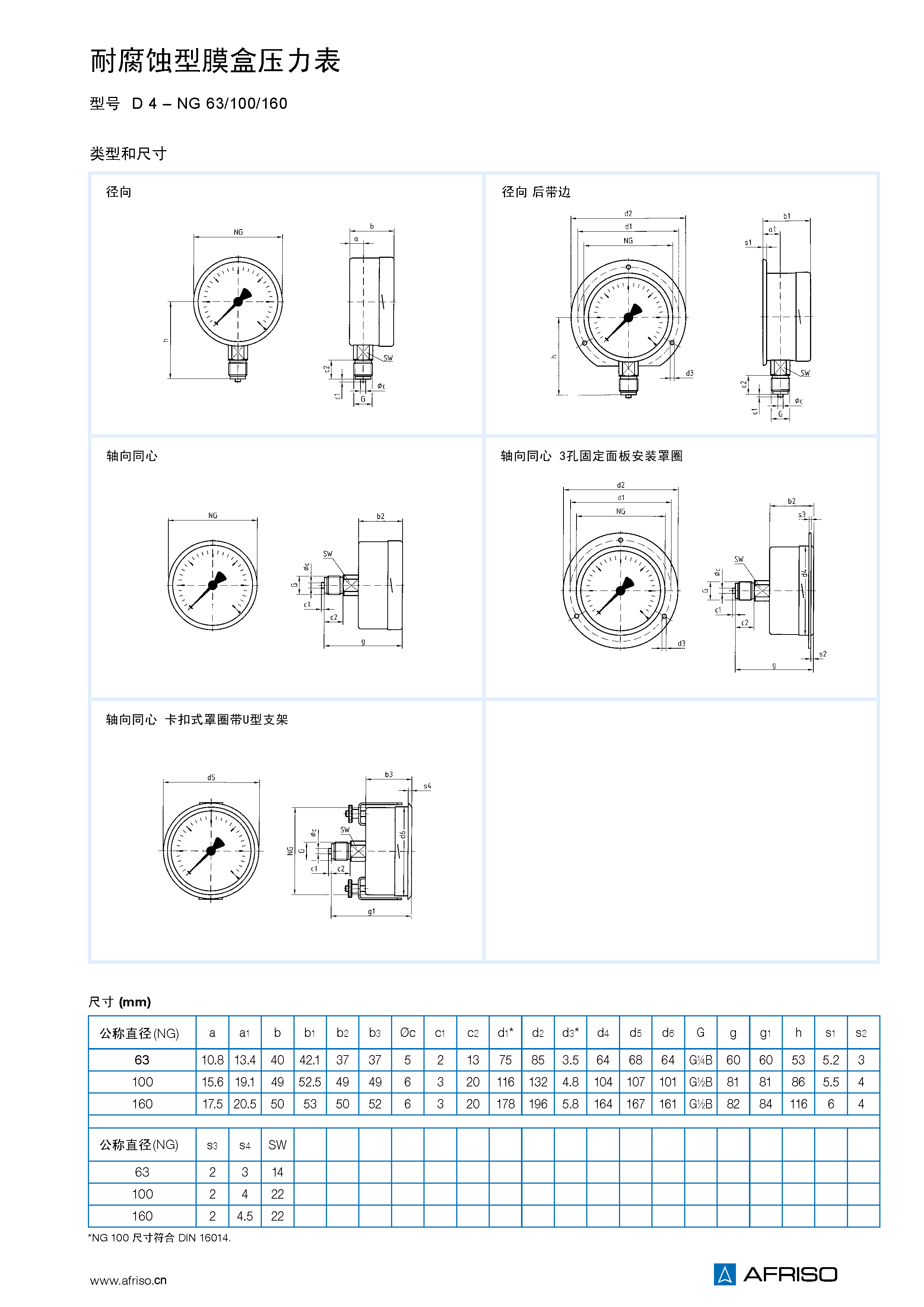 徑向或軸向同心 NG 63 G1/4B – SW14 NG 100-160 G1/2B – SW22 (EN 837-3/7.3) |