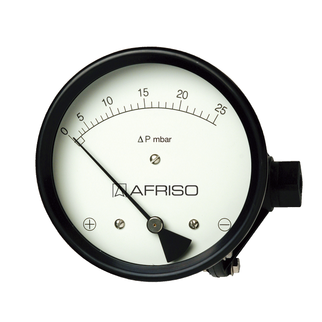 壓力作用在被膜片隔開的兩個壓力腔內。如果兩壓力腔的壓力有差異,膜片通過一個磁鐵頂著彈簧產生位移,這個位移通過裝在指針座上的電磁線圈傳遞給指針。壓差直接由指針指示。 |