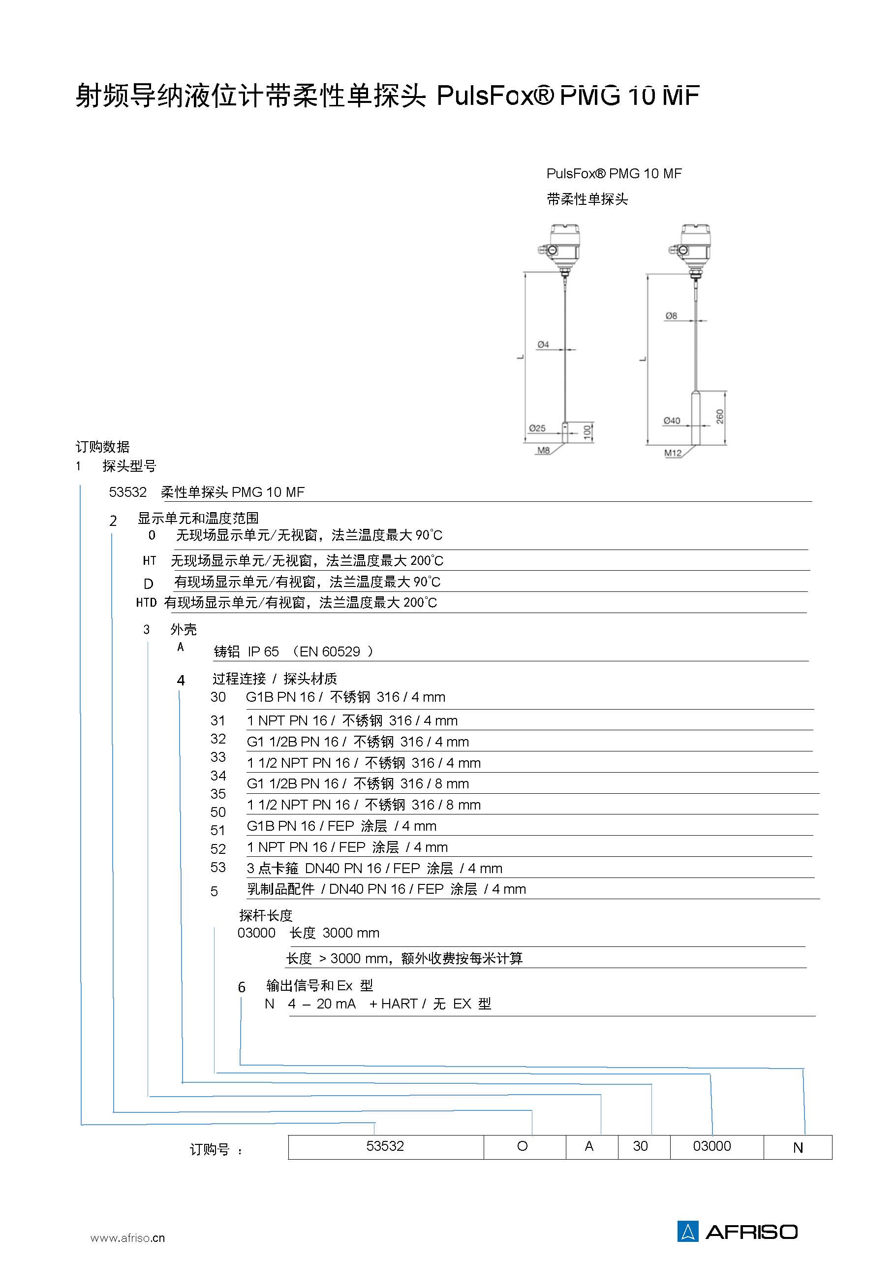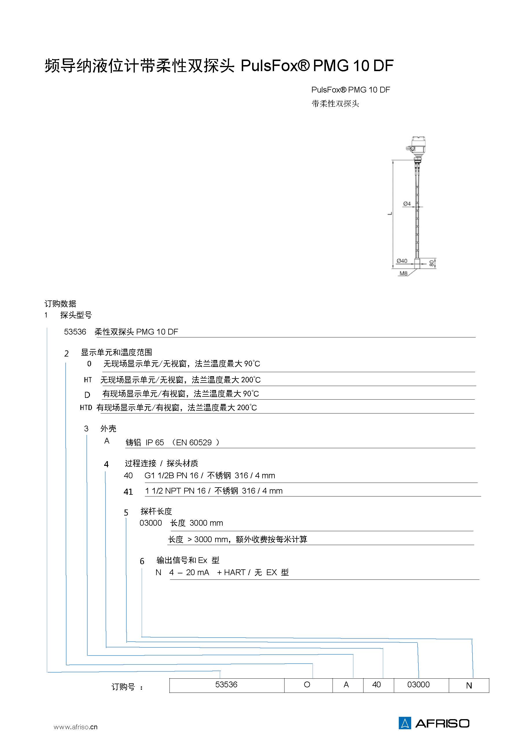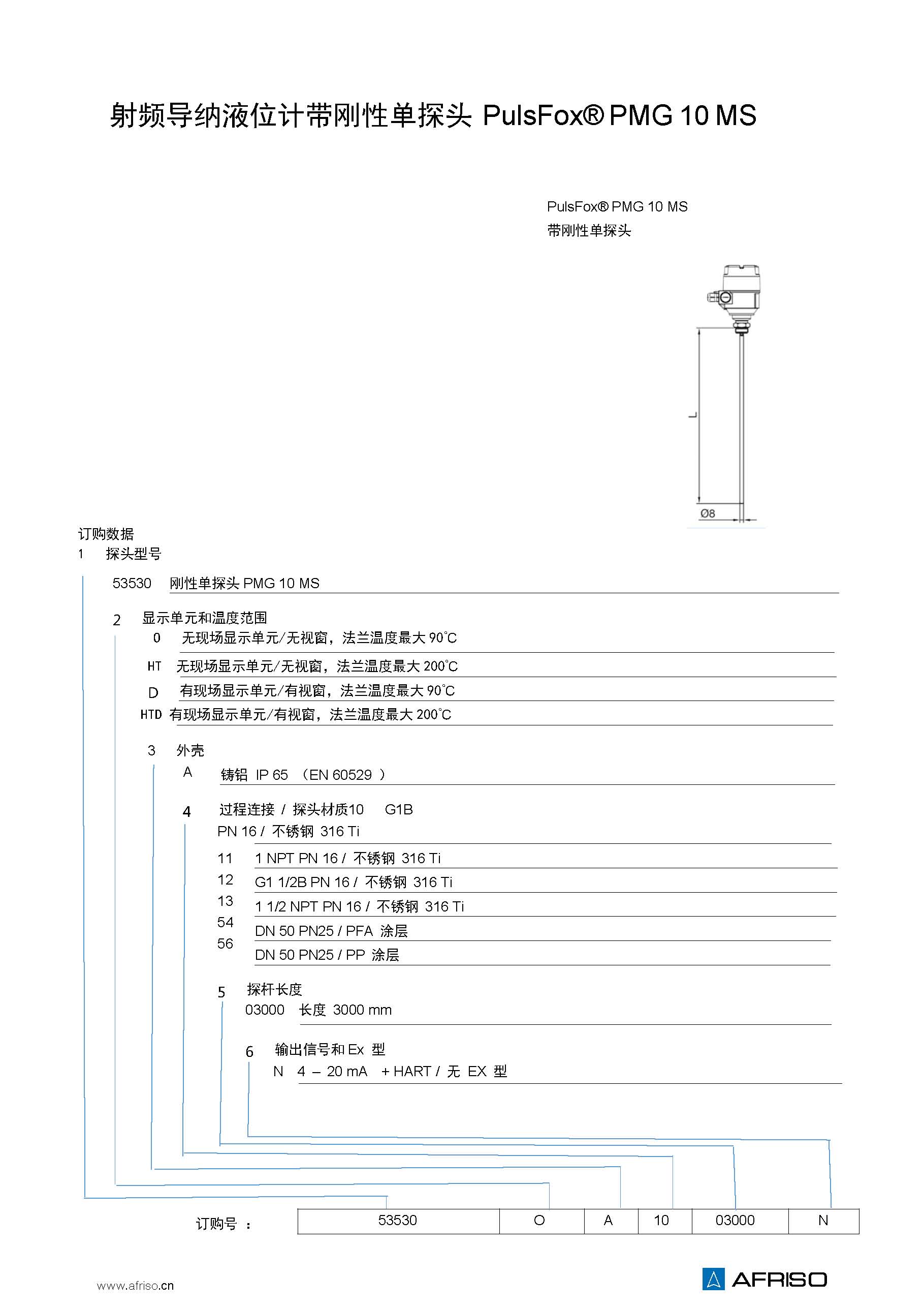 PulsFox® PMG 10液位計(jì)利用導(dǎo)向的微波來檢測(cè)液位的(TDR,時(shí)域反射技術(shù))。一個(gè)微波沿著探桿發(fā)射出,微波周圍由電磁場(chǎng)包圍。目標(biāo)物反射回的微波作為計(jì)算距離的依據(jù),微波傳播的時(shí)間與探頭和介質(zhì)表面 的距離成正比。材料的反射率取決于介電常數(shù)。介質(zhì)的變化(如蒸汽,灰塵或湍急的表面)不會(huì)影響測(cè)量精度。不同的介質(zhì)也無需重新校正儀器。即使介質(zhì)的壓力,溫度,密度發(fā)生變化,系統(tǒng)也能穩(wěn)定精確地工作。 PulsFox® PMG 10沒有活動(dòng)的部件,所以它沒有磨損,不需要維護(hù)。 |