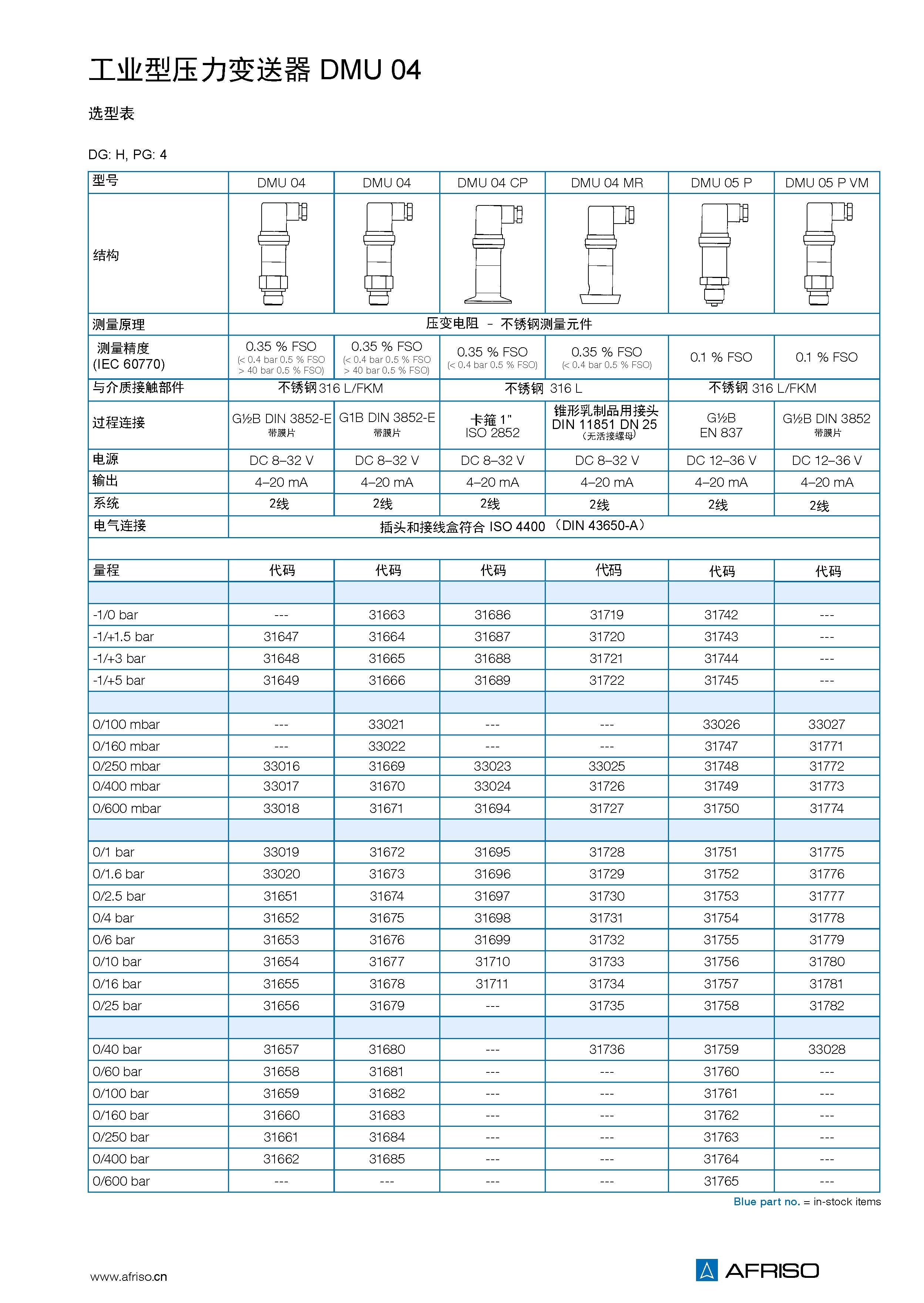 壓力變送器將物理壓力轉(zhuǎn)換成與壓力成正比的電信號(hào)。DMU 05 的測量單元是充油的壓電硅。DMU 05變送器配備了數(shù)字 放大電路(微處理器和16位A/D轉(zhuǎn)換)。 DMU 05 P 可補(bǔ)償傳感器偏差(非線性,溫度偏差),實(shí)現(xiàn)精確的檢測功能。 DMU 05也可選配RS 485 Modbus RTU,用以設(shè)定偏差,量程,阻尼系數(shù)。 |